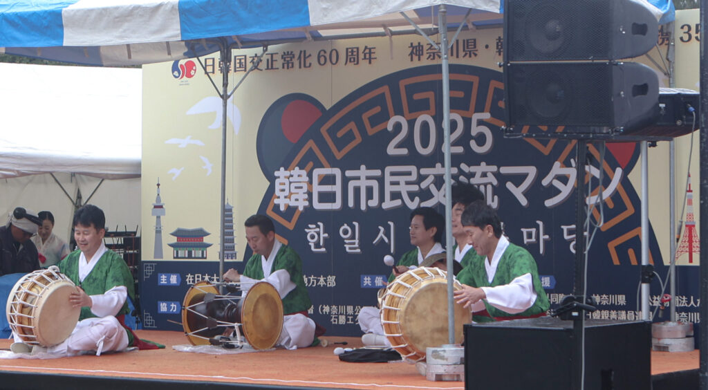 「2025 韓日市民交流マダン」雨空の下でにぎわった会場