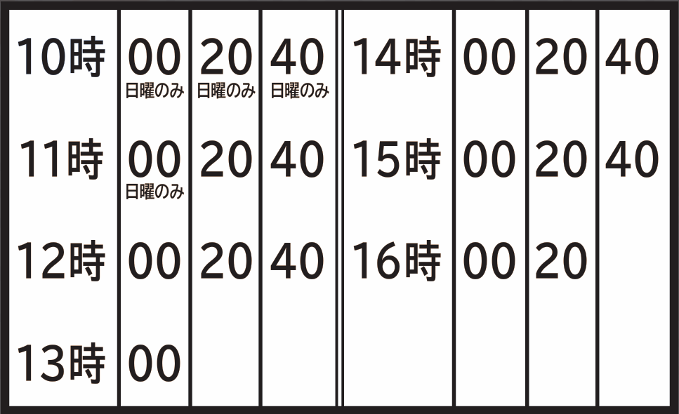 ・日曜日 10:00~受付開始